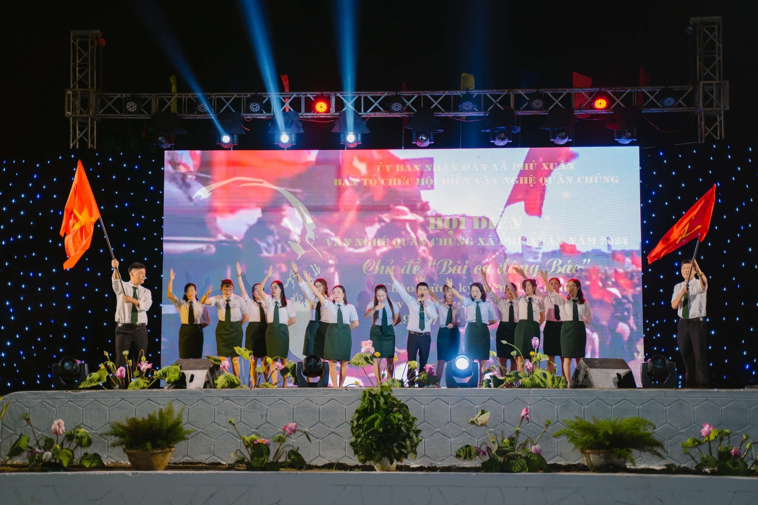 Vào lúc 18 giờ ngày 10 tháng 05 năm 2024, tại sân khấu ngoài trời sân vận động UBND, xã Phú Xuân long trọng tổ chức hội diễn văn nghệ quần chúng với các tiết mục đặc sắc, vô cùng đa dạng, các tiết mục múa đặc sắc cùng với các tiết mục văn nghệ hấp dẫn khác. Đây chính là cơ hội để cho chúng ta cùng nhau tưởng nhớ Bác.
