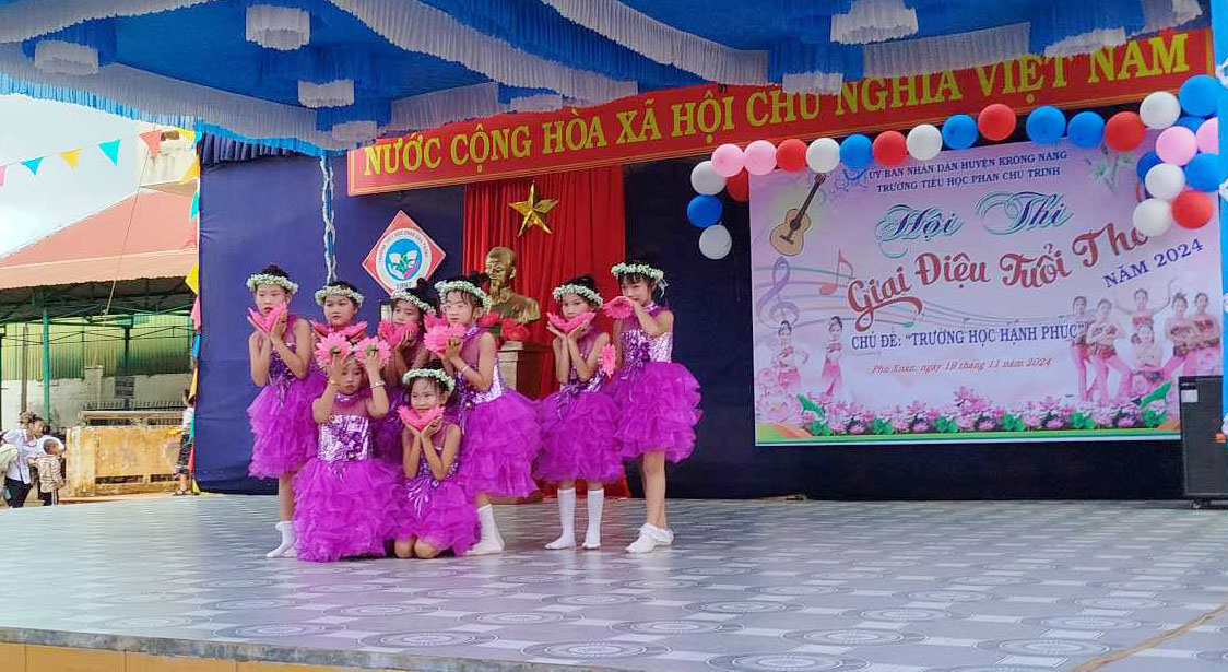 Không khí toàn trường tràn ngập yêu thương với những màn biểu diễn văn nghệ xuất sắc được các em học sinh dày công tập luyện để dâng lên quý thầy cô. Những món quà là những bông hoa những lời ca mọi người cứ thế trao gởi yêu thương, trao gởi niềm tin và trao cho nhau động lực để làm tốt hơn nữa trong sự nghiệp trồng người.